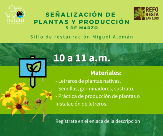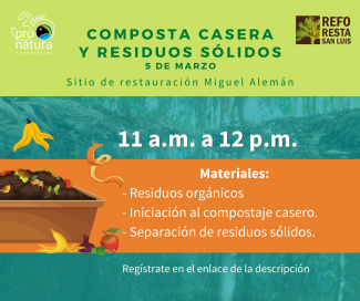 A partir de las 10 de la mañana tendremos un espacio para aprender cómo se siembran las plantas nativas; colocaremos letreros para identificar estas plantas en los senderos del lugar. Además, a las 11 de la mañana realizaremos un taller para elaboración de composta, con la correcta separación de residuos y su puesta en capas para generar tierra fértil.
