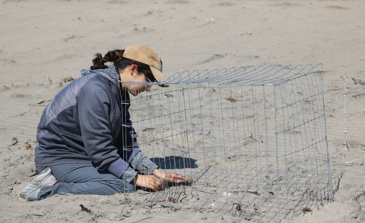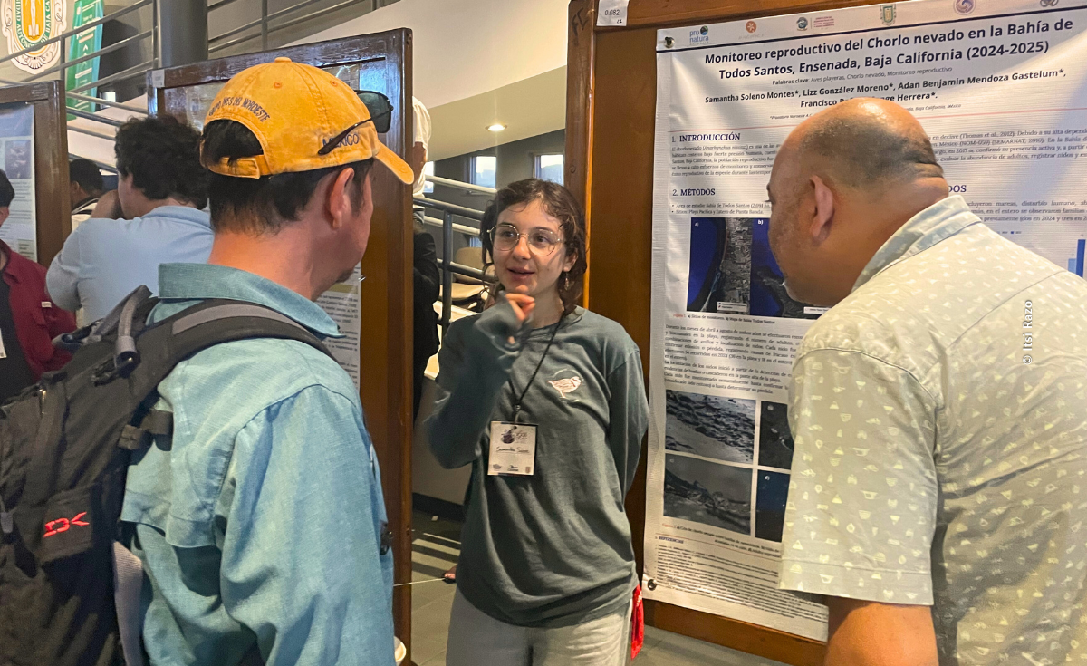 Samantha, bióloga por la Universidad Autónoma de Baja California y originaria de Tijuana, comenzó como nuestra voluntaria en 2023. Hoy se desempeña como técnica de campo y participa en monitoreos de aves playeras, como el chorlo nevado, además de campañas de educación ambiental en escuelas y espacios públicos.