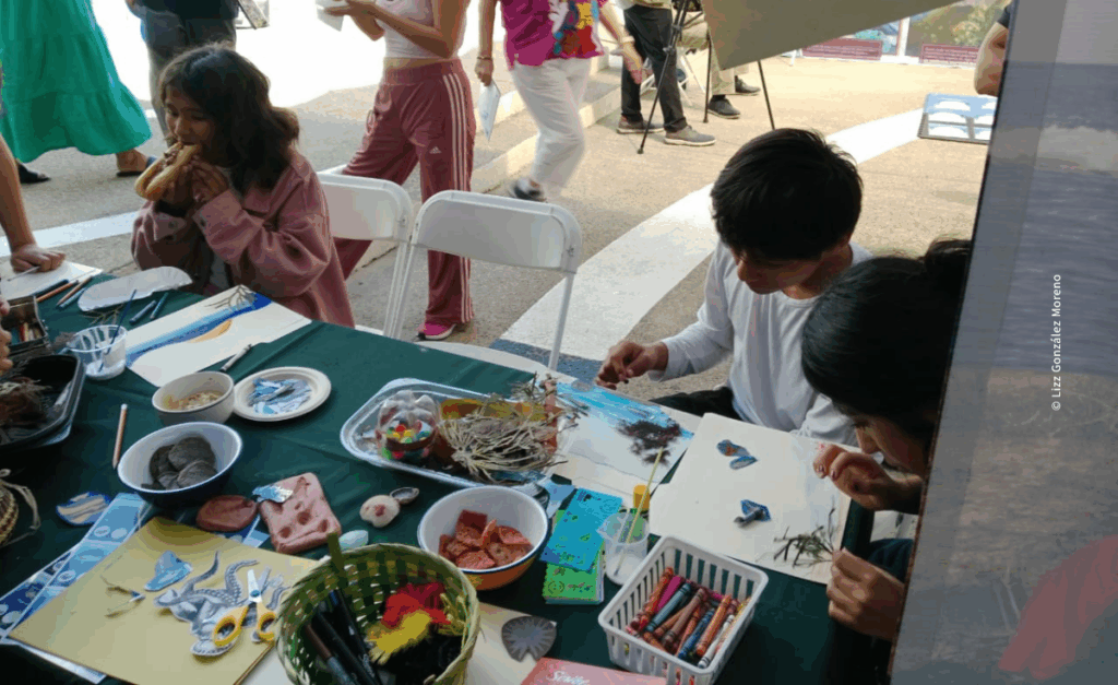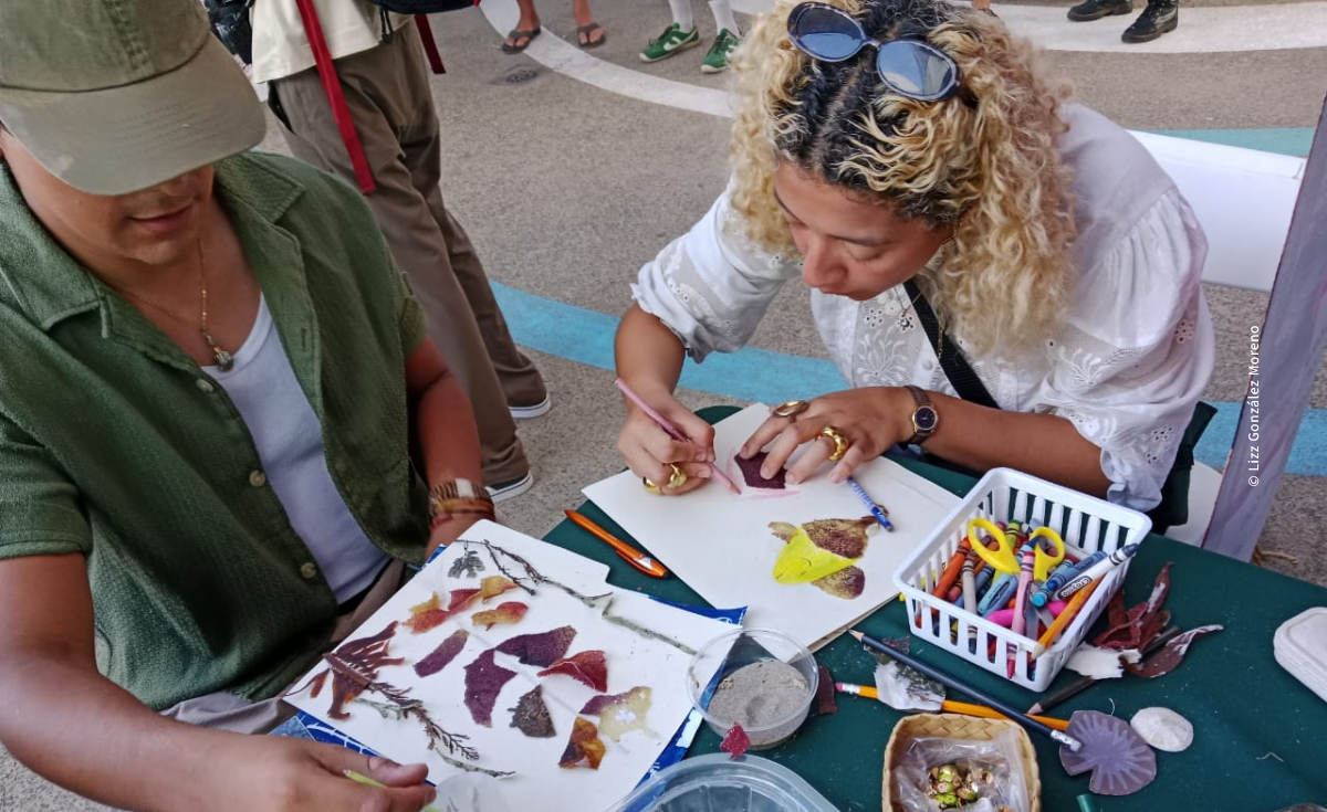 En este espacio, niñas, niños y adultos exploraron este maravilloso mundo submarino, conocieron algunas especies de algas que ahí habitan y representaron su belleza a través de collages artísticos, fortaleciendo su vínculo con el entorno marino.