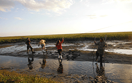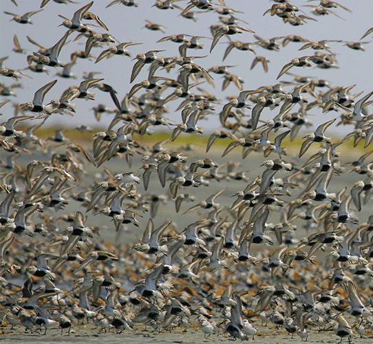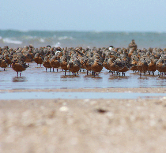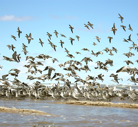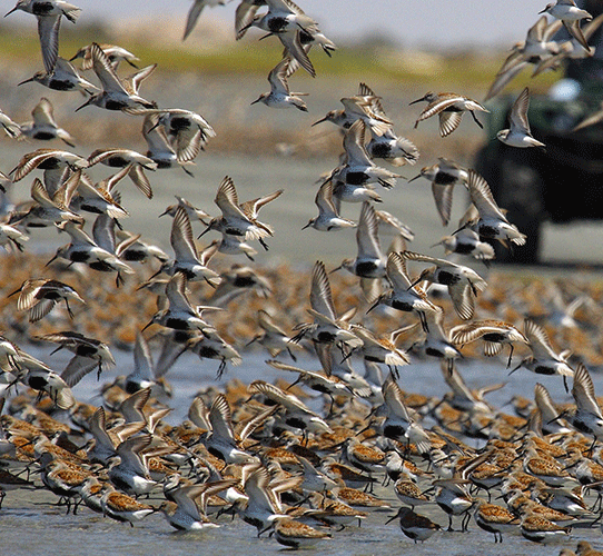 Los playeros se cuentan entre las aves acuáticas migratorias más abundante y ampliamente distribuidas en las costas del Pacífico americano.En Norteamérica se reproducen 49 especies, que en su mayoría anidan en el subártico, incluida Alaska, Canadá y las regiones norteñas de Estados Unidos. Estas especies pasan el invierno en áreas desde el sur de los EUA hasta Patagonia, por lo que realizan migraciones anuales de entre 5,000 y 15,000 km entre sus áreas de reproducción y sus sitios de invernación. En sus migraciones a lo largo del continente americano estas aves utilizan tres grandes corredores: el del Atlántico, el Transcontinental y el del Pacífico, por el número de especies y de individuos que lo utilizan, el más importante es el del Pacífico.